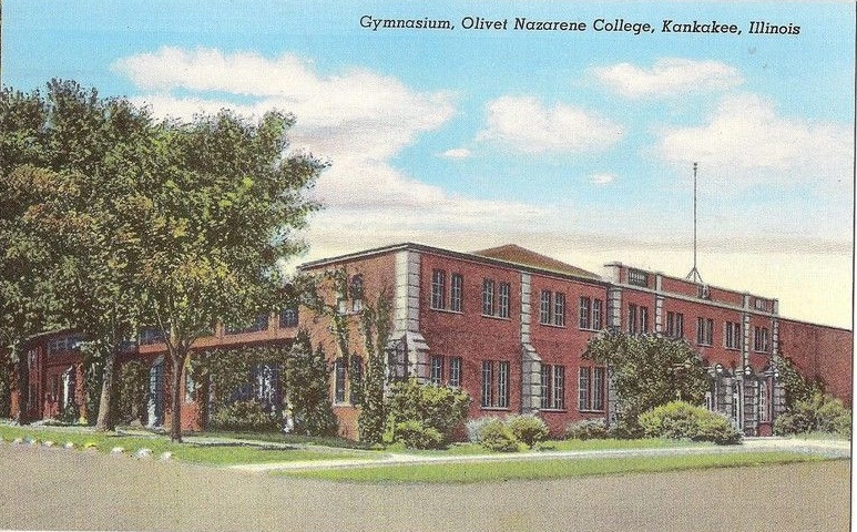 Kankakee, Illinois, Olivet Nazarene College (now University) Dormitory. From back: “Dedicated to the high ideals of providing a liberal education in an environment of Christian culture, conserving fundamental, spiritual and moral values.”